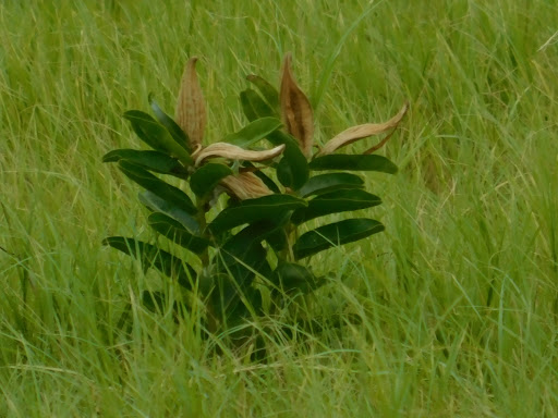 | Okay, it is NOT a bird. It's a milkweed. It was also in the middle of a field, so this is as close as I can get to an identification. |